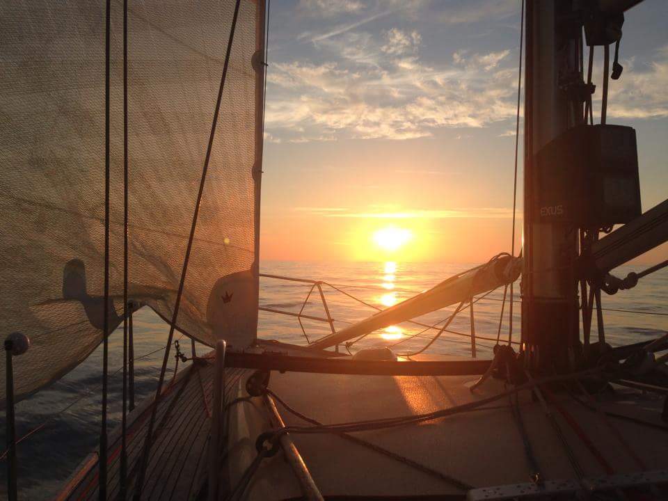Väl ute på havet beslutade vi att köra på vad routingen föreslog och vi satte spinnakern och seglade iväg mot SV det mesta talade för det valet, Vi gick fort med spinnakern, strömmen skulle ta oss mot NV under bleket och vinden skulle fylla på från syd för att vrida över till väst. Vi körde ett rullande vaktsystem från 19:00 då den första fick 2 h vila efter en timme gick nästa ner så att två pers alltid vilade. Det funkade bra och alla fick nog 6h vila under racet. Vi seglade på 7 (Anders D, Mikael W, Anders F, Emma, Kasper, Carina och Jens)